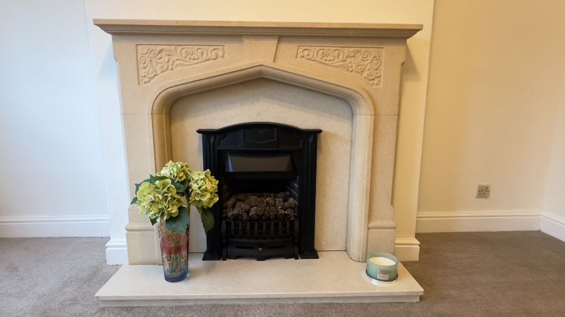 A bright sunny space with feature fire place and gas fire. New carpet.