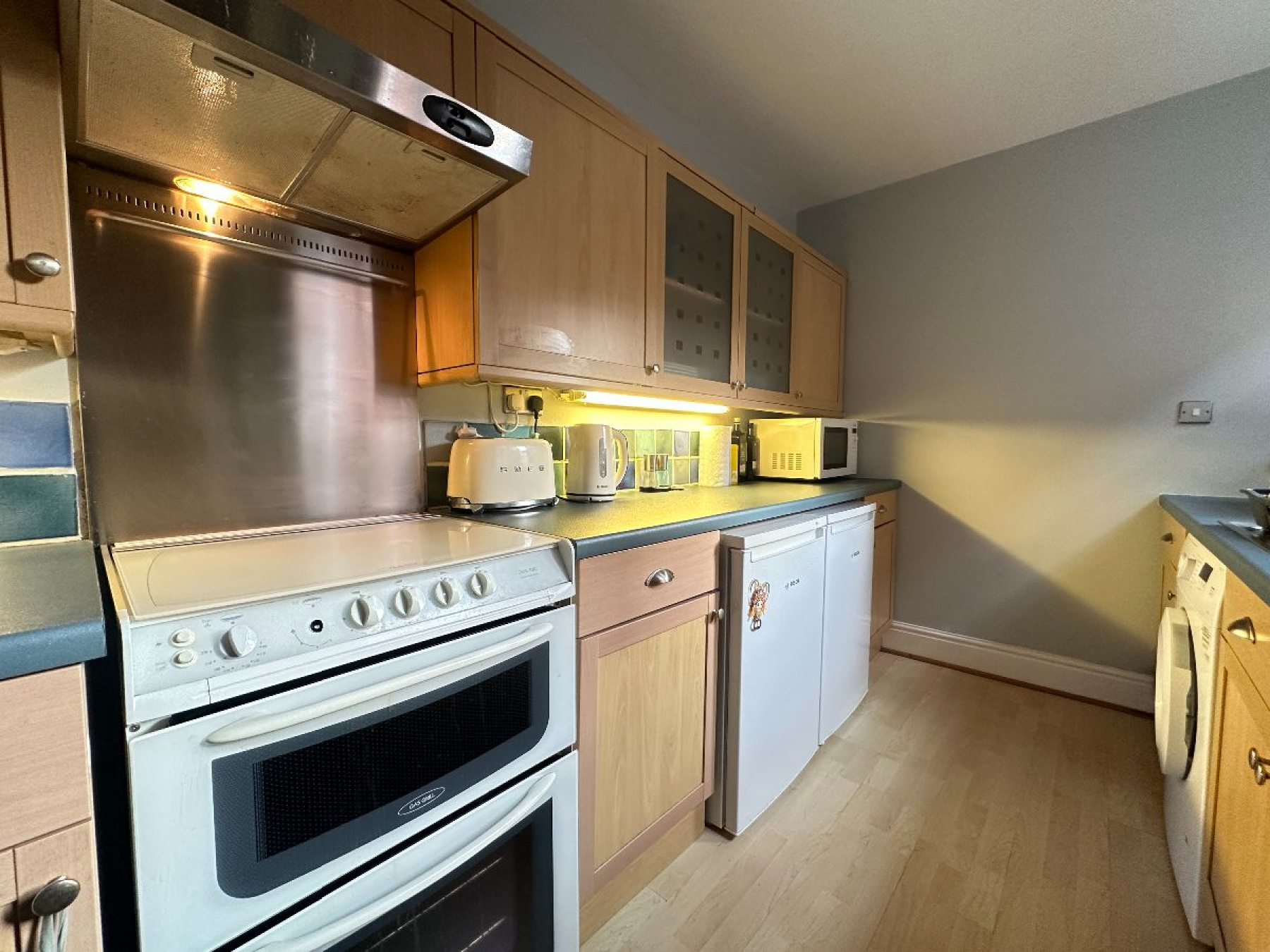 The kitchen benefits from a gas supply, ideal for keen cooks. There is space for an under-counter fridge, freezer, and washing machine, along with ample cupboard storage.