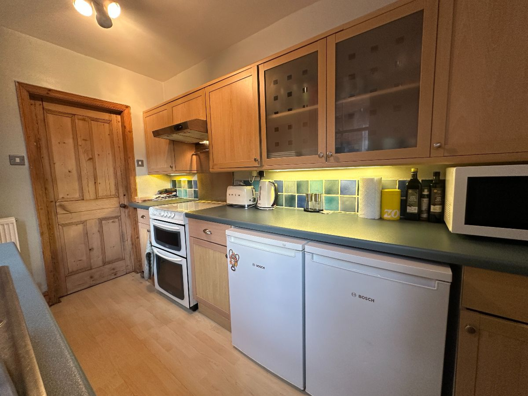 The kitchen benefits from a gas supply, ideal for keen cooks. There is space for an under-counter fridge, freezer, and washing machine, along with ample cupboard storage.