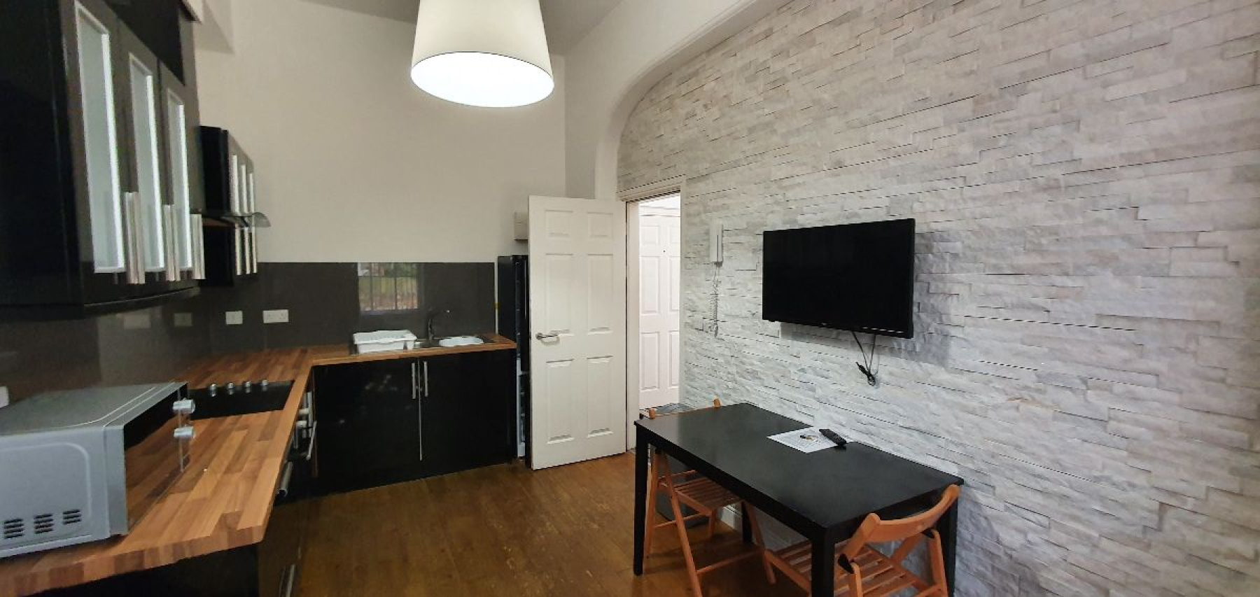 Comes fully furnished with; oven, hob, microwave and lots of worktop and storage.